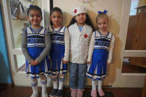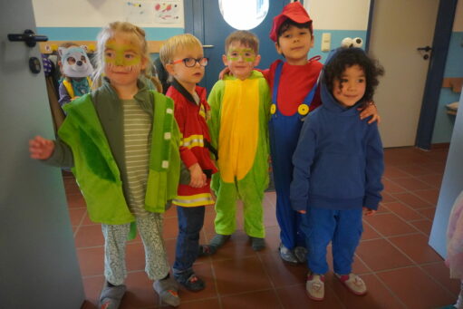 Die Kinder sind stolz auf ihre Kostüme. Viele Prinzessinen, Clowns, Indianer, Feuerwehrmänner, Königin Elsa und Ninjakämpfer trifft man auf den Fluren.