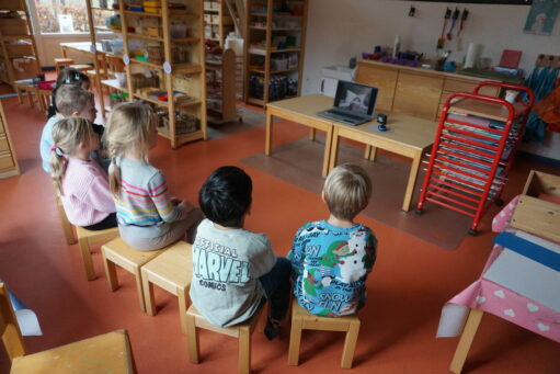 Wir treffen uns zum ersten Projektangebot mit der halben Vorschulgruppe im Turnraum. Je nach Angebot werden die Kinder in kleinere Gruppen eingeteilt.