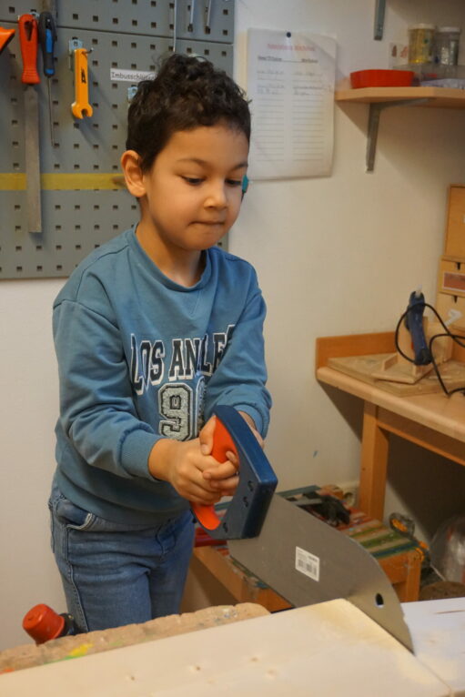 Die Kinder sind mit Freude, Interesse und Motivation bei der Sache. Die Arbeit im Werkraum macht ihnen Spaß und sie sind stolz auf ihr Werkstück!